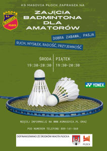 W dniach 26–28 września w Warszawie odbył się XXII Warszawski Otwarty Festiwal Badmintona. Zawody rozgrywane były w czterech kategoriach: U-13 i U-17 w formule krajowej oraz U-15 i U-19 w ramach Otwartych Grand Prix. Klub Sportowy Masovia Płock reprezentowali: Alicja Michalska, Kuba Piotrowski, Kacper Kosz, Franciszek Rajkowski, Olgierd Byczek oraz Wojciech Kamiński. Wyniki naszych zawodników Kategoria…