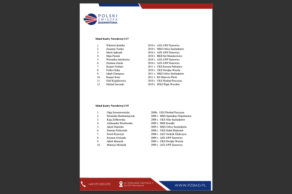 W dniach 10–11 stycznia odbył się Camp Selekcyjny, którego celem było wytypowanie składów Kadr Narodowych w kategoriach młodzieżowych U-15, U-17 oraz U-19 …