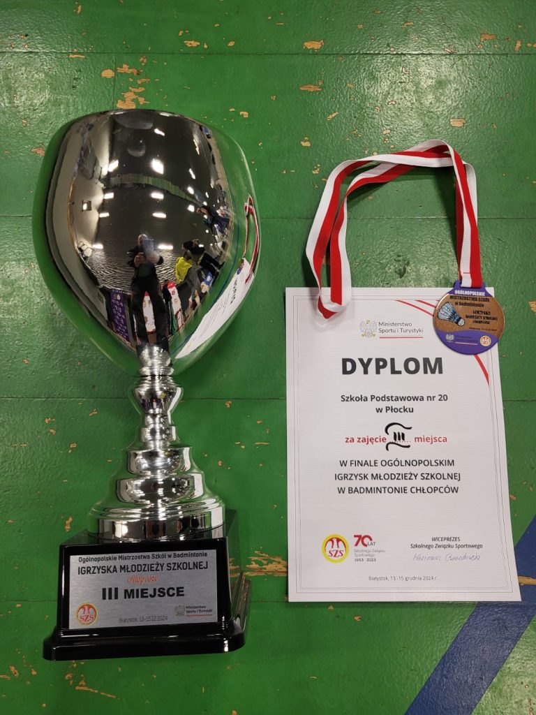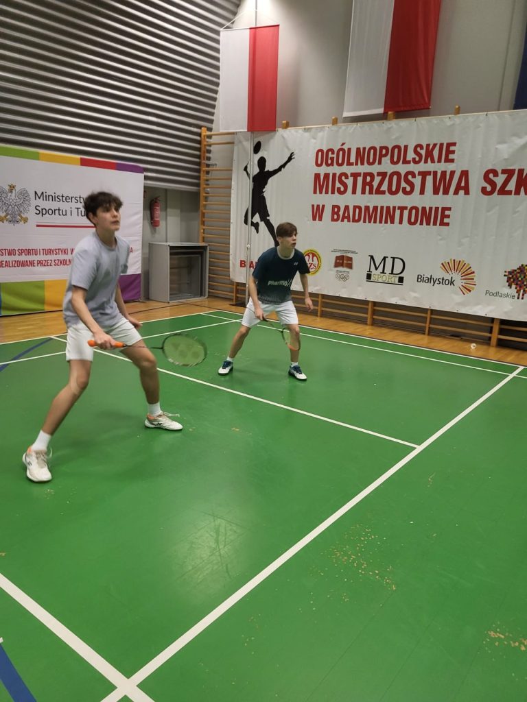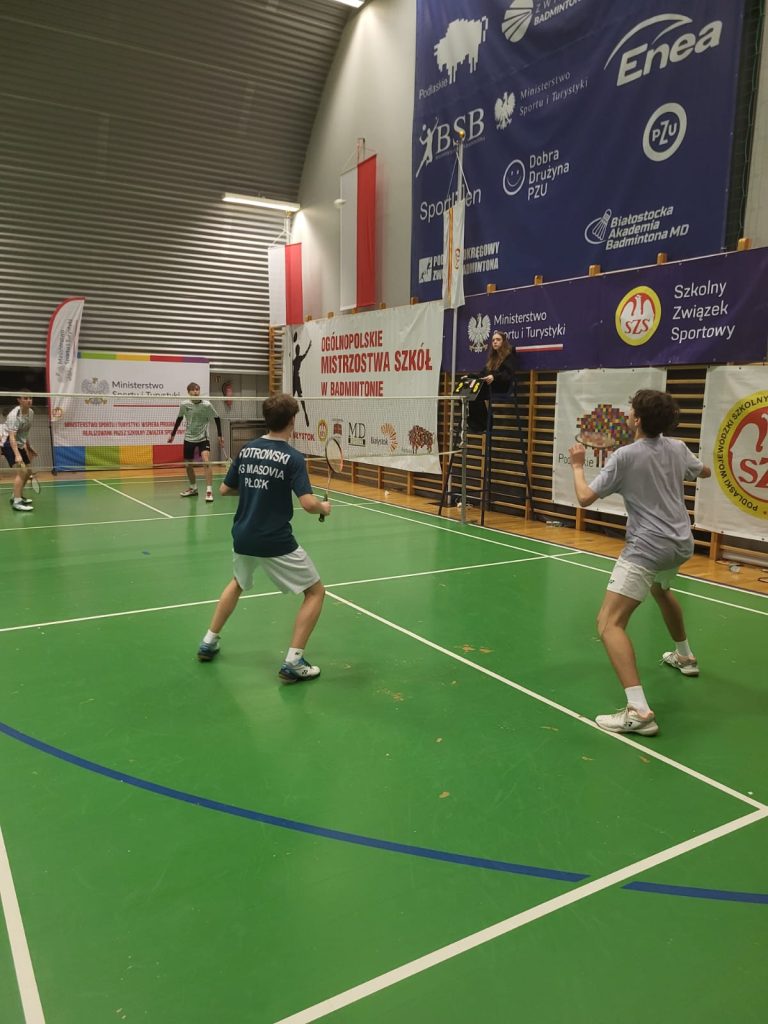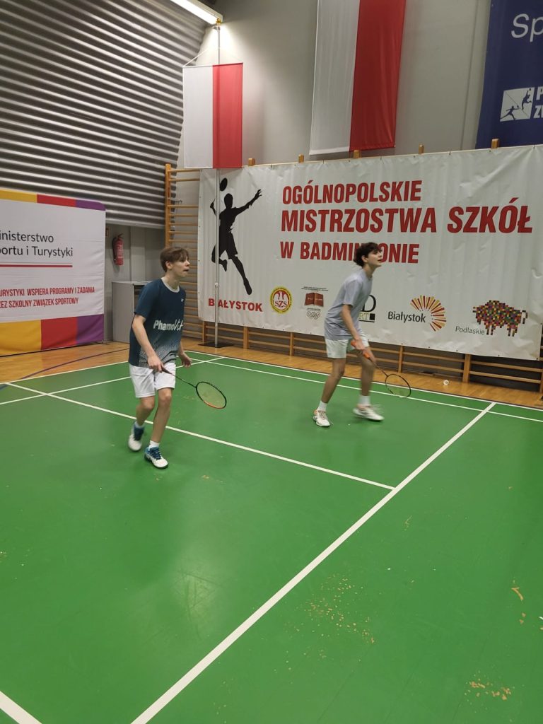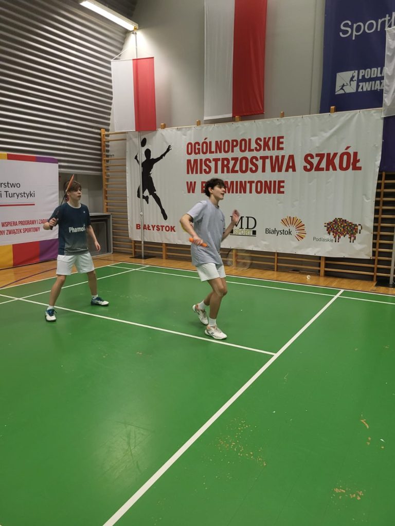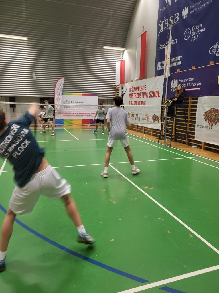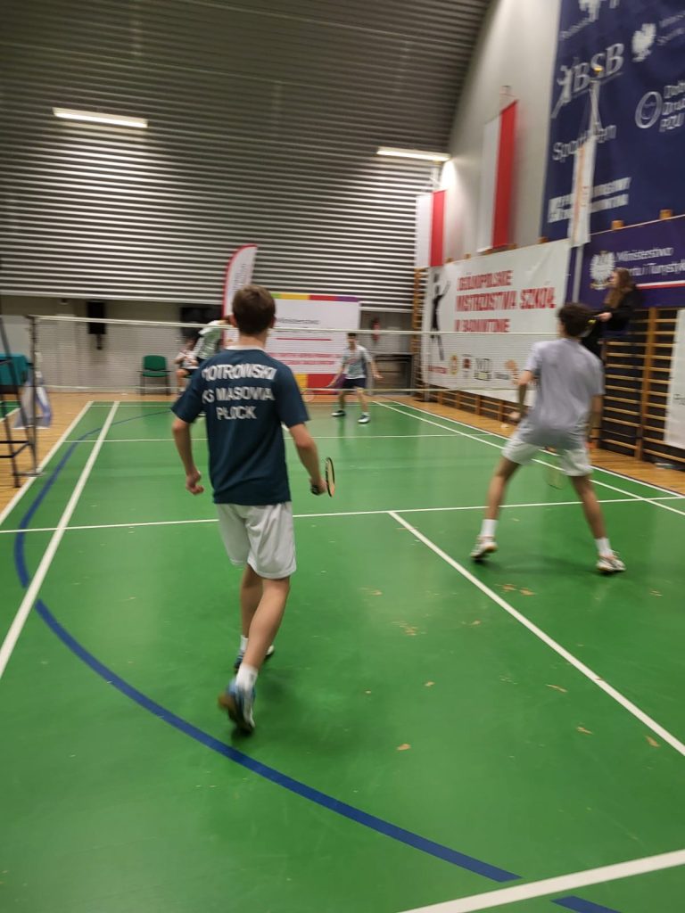 Wygrywamy mecz o wejście do ćwierćfinału z drużyną SP Głubczyce 3:0. Wygrywamy ćwierćfinał z SP 2 Niepołomice 3:1 i jesteśmy w czwórce najlepszych drużyn w Polsce. Niestety przegrywamy minimalnie mecz półfinałowy z SP Tyniec Mały. Jednak szybko zbieramy się po porażce i pewnie wygrywamy mecz o III miejsce z drużyną z SP Donaborów i tym samym po dwóch dniach zmagań jesteśmy trzecią drużyną w kraju w badmintonie. Brawo dla Kuby Piotrowskiego i Gabrysia Piskorskiego, bo to właśnie oni dokonali tego wielkiego czynu, zapisując się na kartach historii szkoły i płockiego sportu. Przeżyłem niesamowite emocje związane z tymi zawodami i nie ukrywam, że łezka w oku mi się zakręciła w momencie awansu do najlepszej czwórki i możliwości gry w ścisłym finale. W półfinale zabrakło trochę zimnej krwi, ale jestem niezwykle dumny z walki i zaangażowania Kuby i Gabrysia”.