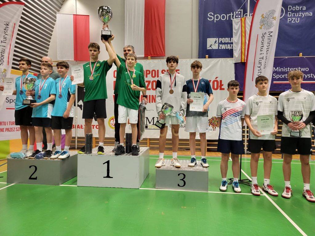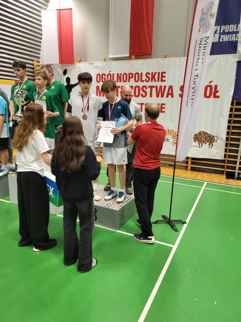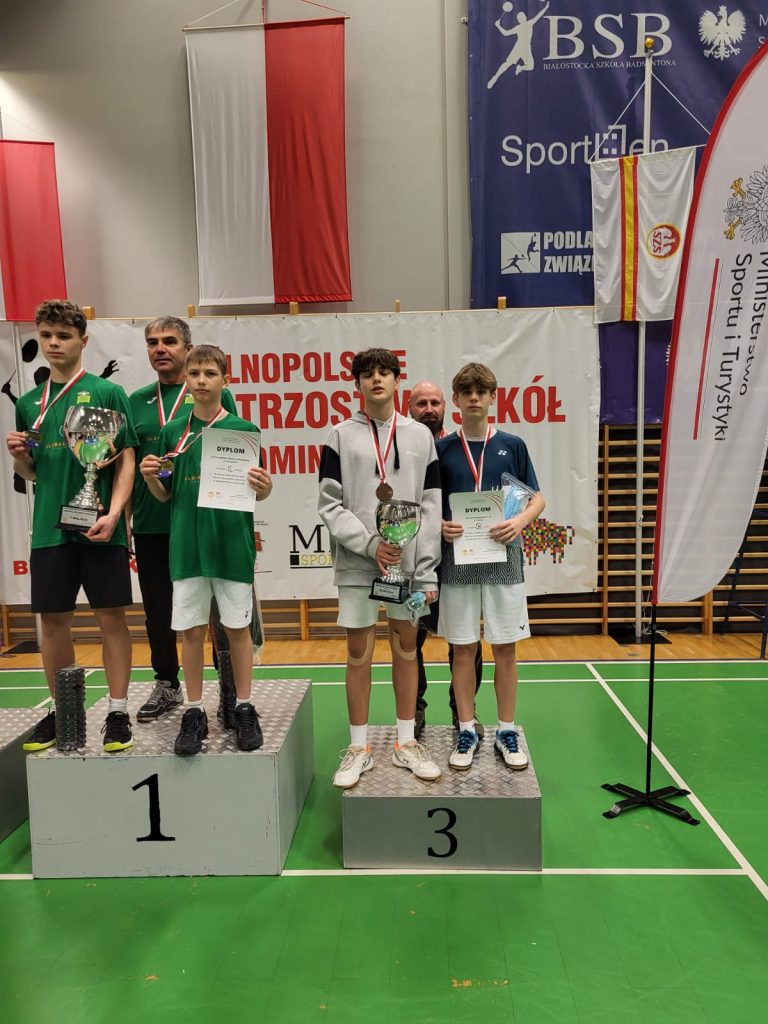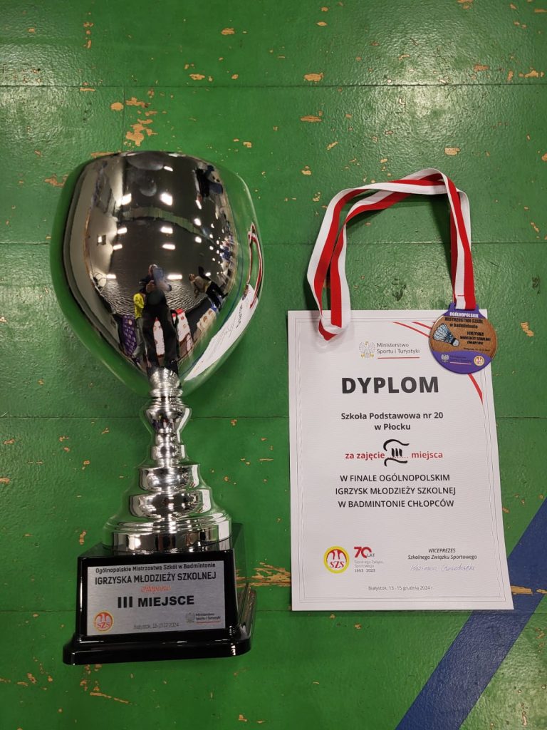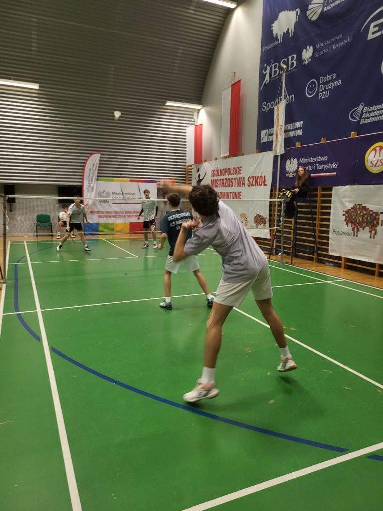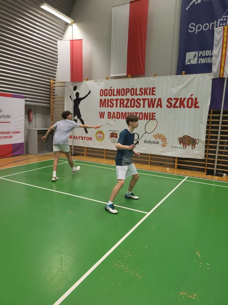 Wygrywamy mecz o wejście do ćwierćfinału z drużyną SP Głubczyce 3:0. Wygrywamy ćwierćfinał z SP 2 Niepołomice 3:1 i jesteśmy w czwórce najlepszych drużyn w Polsce. Niestety przegrywamy minimalnie mecz półfinałowy z SP Tyniec Mały. Jednak szybko zbieramy się po porażce i pewnie wygrywamy mecz o III miejsce z drużyną z SP Donaborów i tym samym po dwóch dniach zmagań jesteśmy trzecią drużyną w kraju w badmintonie. Brawo dla Kuby Piotrowskiego i Gabrysia Piskorskiego, bo to właśnie oni dokonali tego wielkiego czynu, zapisując się na kartach historii szkoły i płockiego sportu. Przeżyłem niesamowite emocje związane z tymi zawodami i nie ukrywam, że łezka w oku mi się zakręciła w momencie awansu do najlepszej czwórki i możliwości gry w ścisłym finale. W półfinale zabrakło trochę zimnej krwi, ale jestem niezwykle dumny z walki i zaangażowania Kuby i Gabrysia”.
