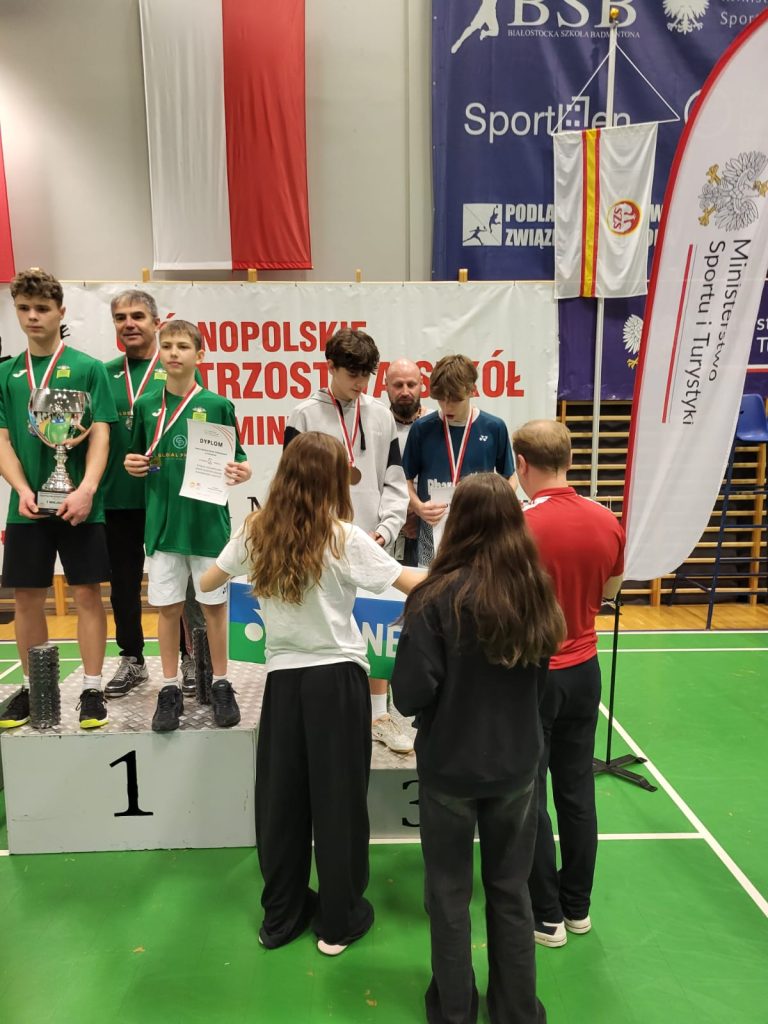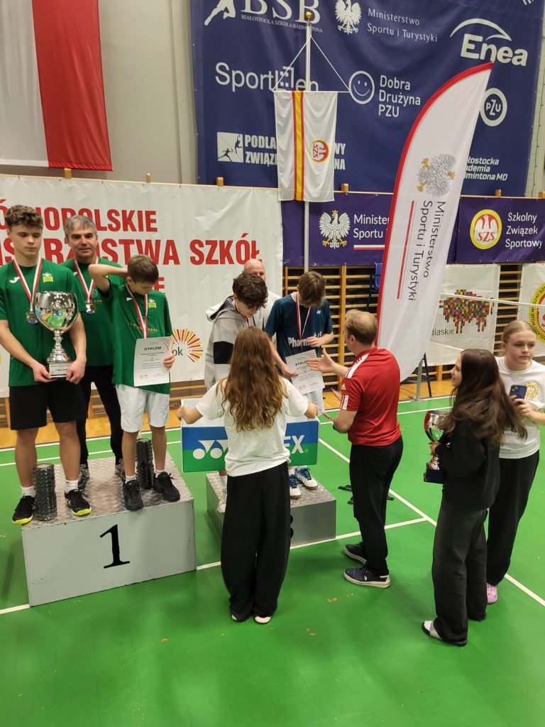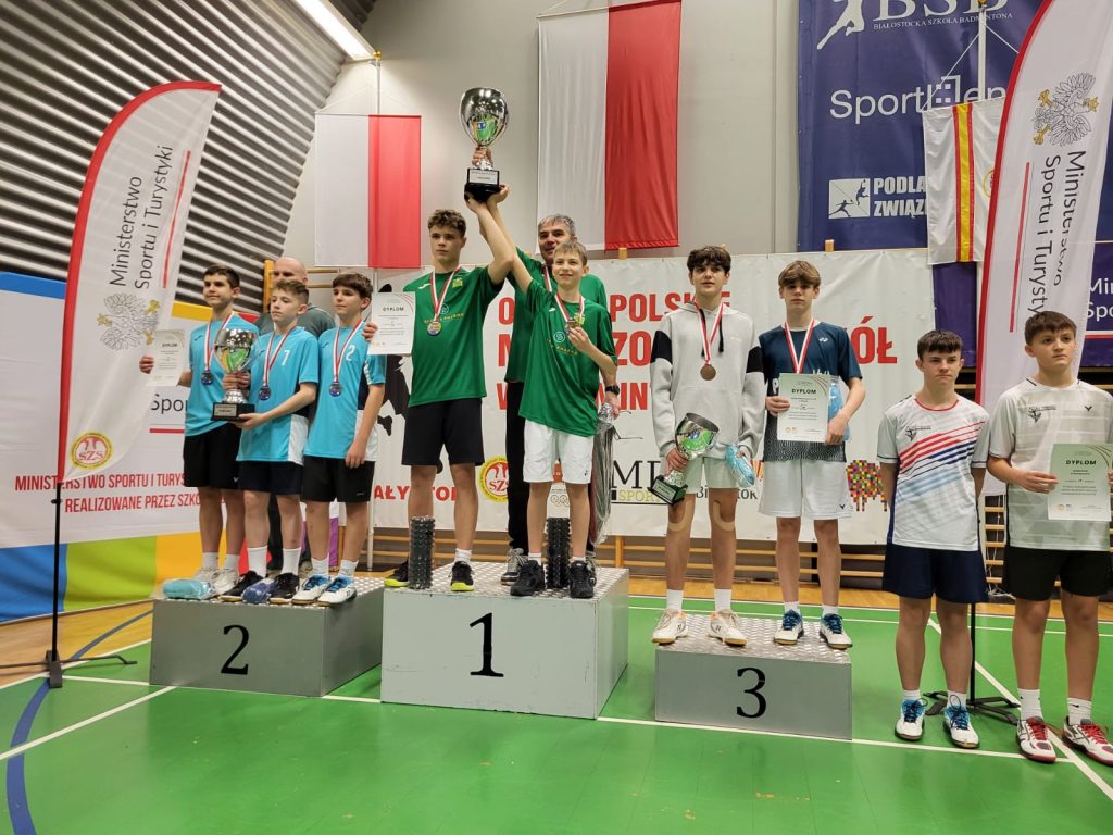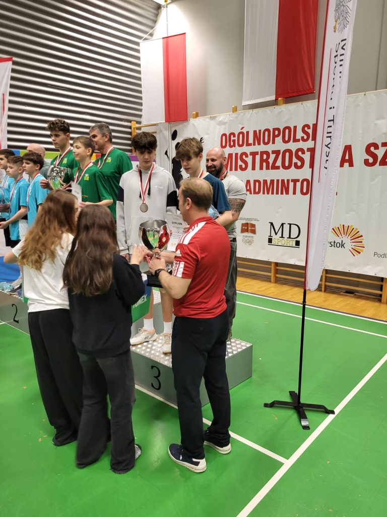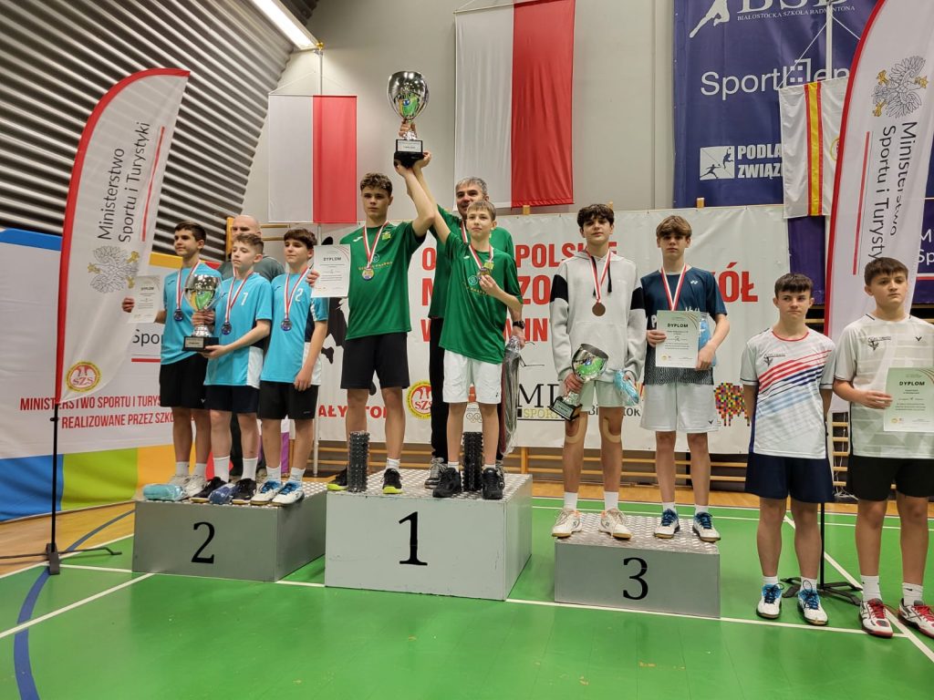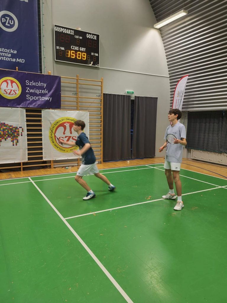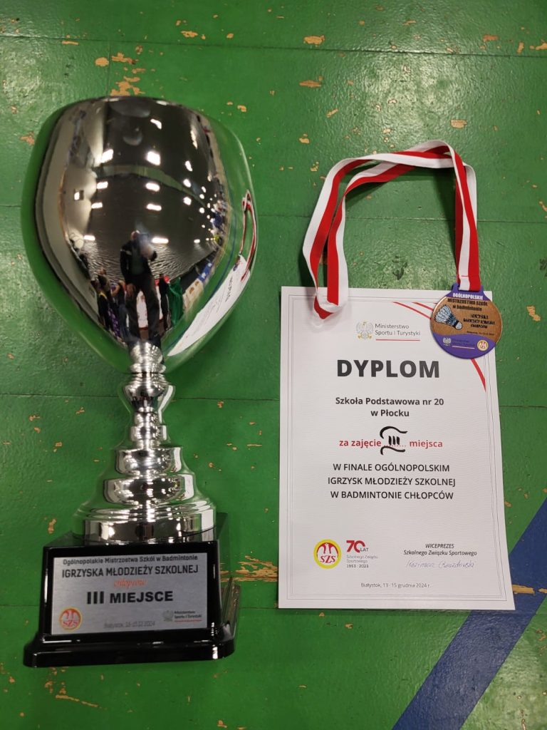 Wygrywamy mecz o wejście do ćwierćfinału z drużyną SP Głubczyce 3:0. Wygrywamy ćwierćfinał z SP 2 Niepołomice 3:1 i jesteśmy w czwórce najlepszych drużyn w Polsce. Niestety przegrywamy minimalnie mecz półfinałowy z SP Tyniec Mały. Jednak szybko zbieramy się po porażce i pewnie wygrywamy mecz o III miejsce z drużyną z SP Donaborów i tym samym po dwóch dniach zmagań jesteśmy trzecią drużyną w kraju w badmintonie. Brawo dla Kuby Piotrowskiego i Gabrysia Piskorskiego, bo to właśnie oni dokonali tego wielkiego czynu, zapisując się na kartach historii szkoły i płockiego sportu. Przeżyłem niesamowite emocje związane z tymi zawodami i nie ukrywam, że łezka w oku mi się zakręciła w momencie awansu do najlepszej czwórki i możliwości gry w ścisłym finale. W półfinale zabrakło trochę zimnej krwi, ale jestem niezwykle dumny z walki i zaangażowania Kuby i Gabrysia”.