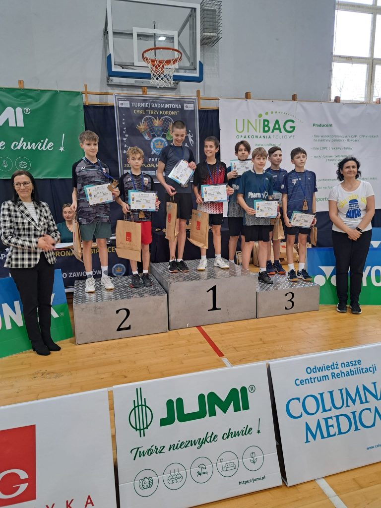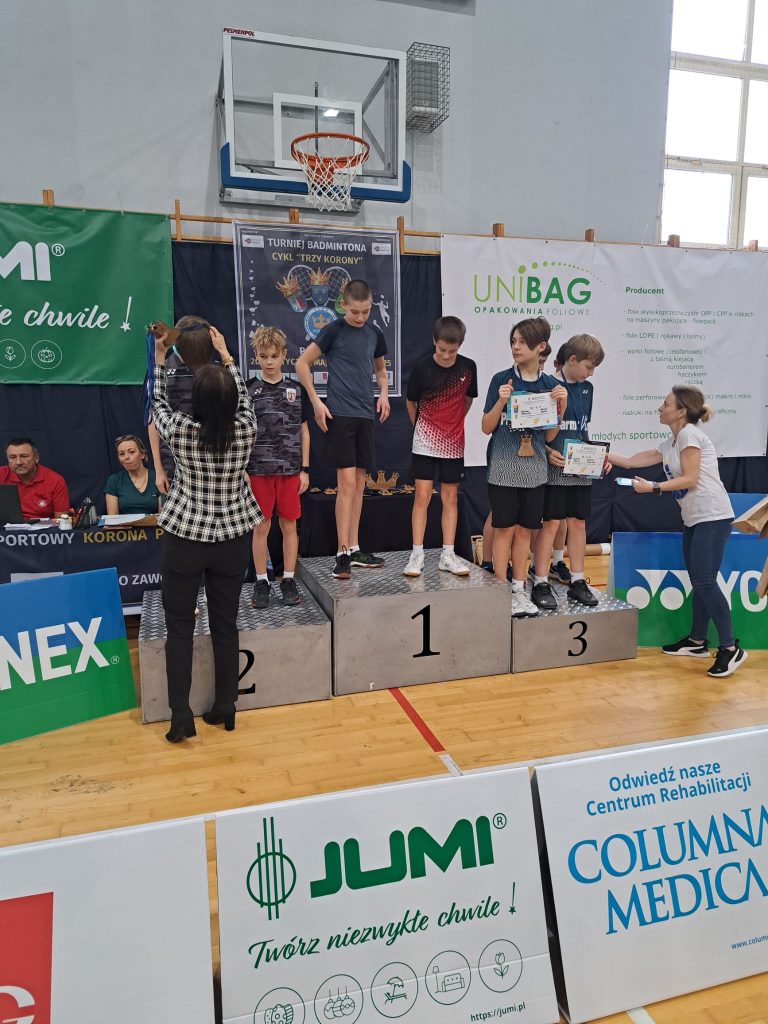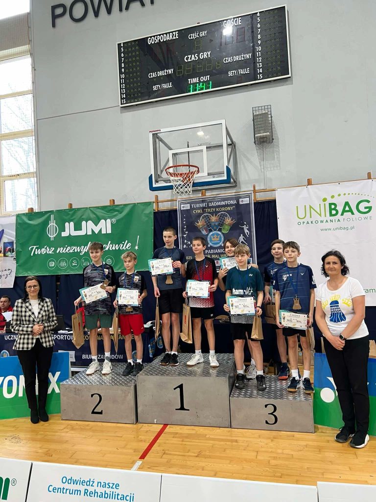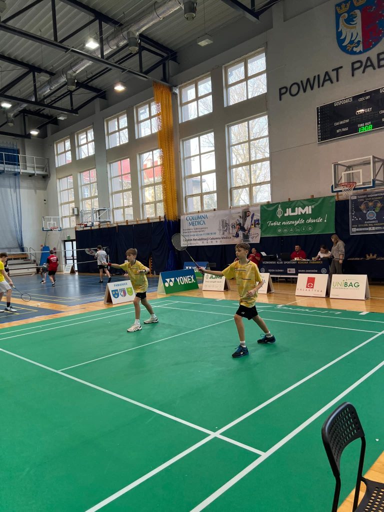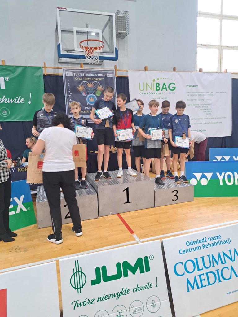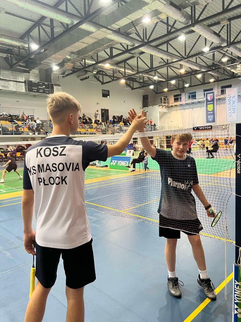 Wysokie 3 miejsce w grze podwójnej zajęli Olgierd Byczek oraz Wojciech Kamiński. W półfinale nie sprostali rozstawionym z nr 1 zawodnikom LKS Technik Głubczyce – Ignacy Walaszek, Hubert Wiciak – 22:24, 15:21. W grze pojedynczej po wygraniu grupy Olgierd awansował do fazy pucharowej i tam zmierzył się ze swoim klubowym kolegą Kacprem Koszem. Kacper w tym pojedynku wygrał 21:12, 21:4 i awansował do kolejnej rundy. Do ćwierćfinału awansował Wojciech Kamiński, który w walce o półfinał zmierzył się z rozstawionym z nr 2 Ignacym Walaszkiem. Po dobrej grze i wyrównanym pojedynku nasz zawodnik musiał uznać wyższość badmintonisty z Głubczyc przegrywając 14:21, 19:21. Wojtek i Olgierd rywalizowali również w grze mieszanej, ale po wyrównanych pojedynkach zakończyli zawody na fazie grupowej.