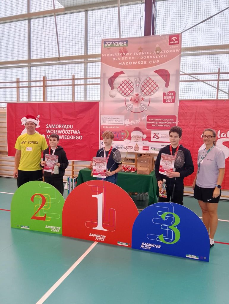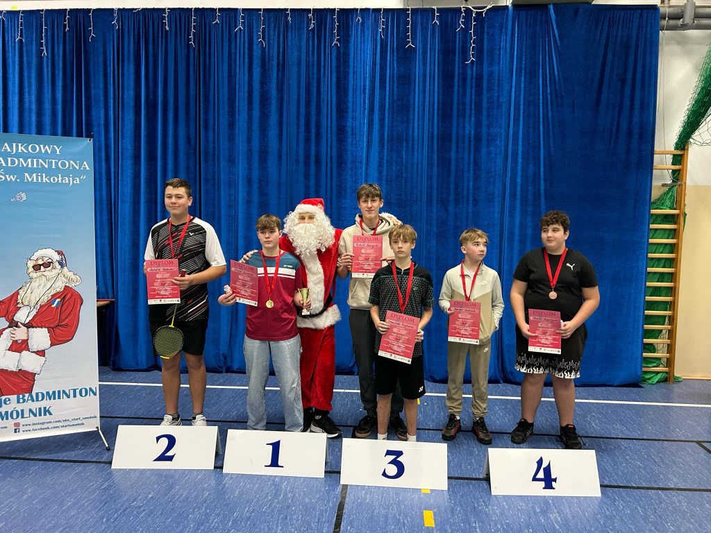 Od nowego roku rozpoczyna się kolejny sezon w którym poza Kacprem Koszem wszyscy nasi zawodnicy zmienią kategorie wiekowe. Olgierd i Wojtek z młodzika młodszego przejdą do młodzika, a Kuba i Gabriel z młodzika przejdą do juniora młodszego. Do wyżej wymienionej piątki, która jeździ systematycznie na turnieje ogólnopolskie dołączy Franciszek Rajkowski, który w okresie Mistrzostw Polski ogrywał się na innych turniejach. W Płocku w Turnieju Mikołajkowym rozgrywanym w poprzednią sobotę zajął 1 miejsce, a dzień później w Smólniku podczas 11. Mikołajkowego Turnieju Badmintona o czapkę Św. Mikołaja wywalczył 3 miejsce.